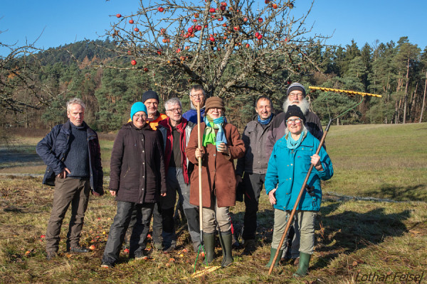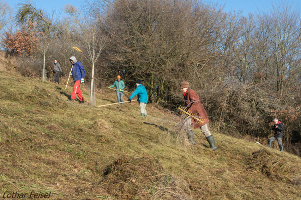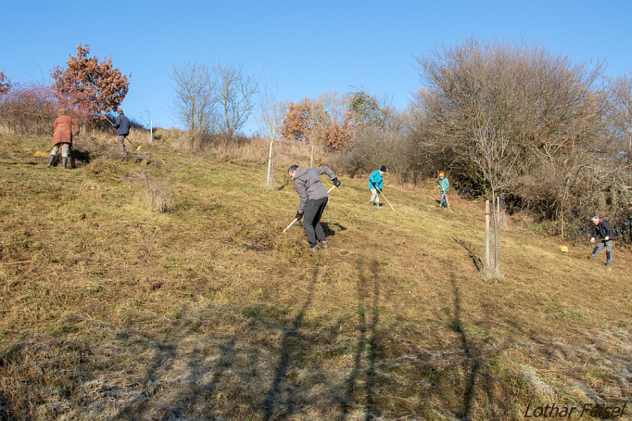 Arbeitseinsatz auf unseren Flächen "Schäfer-Grundstück" und "Himmelsteich-Wiese" bei eisigen Temperaturen, aber herrlich blauem Himmel am 22.11.2025.